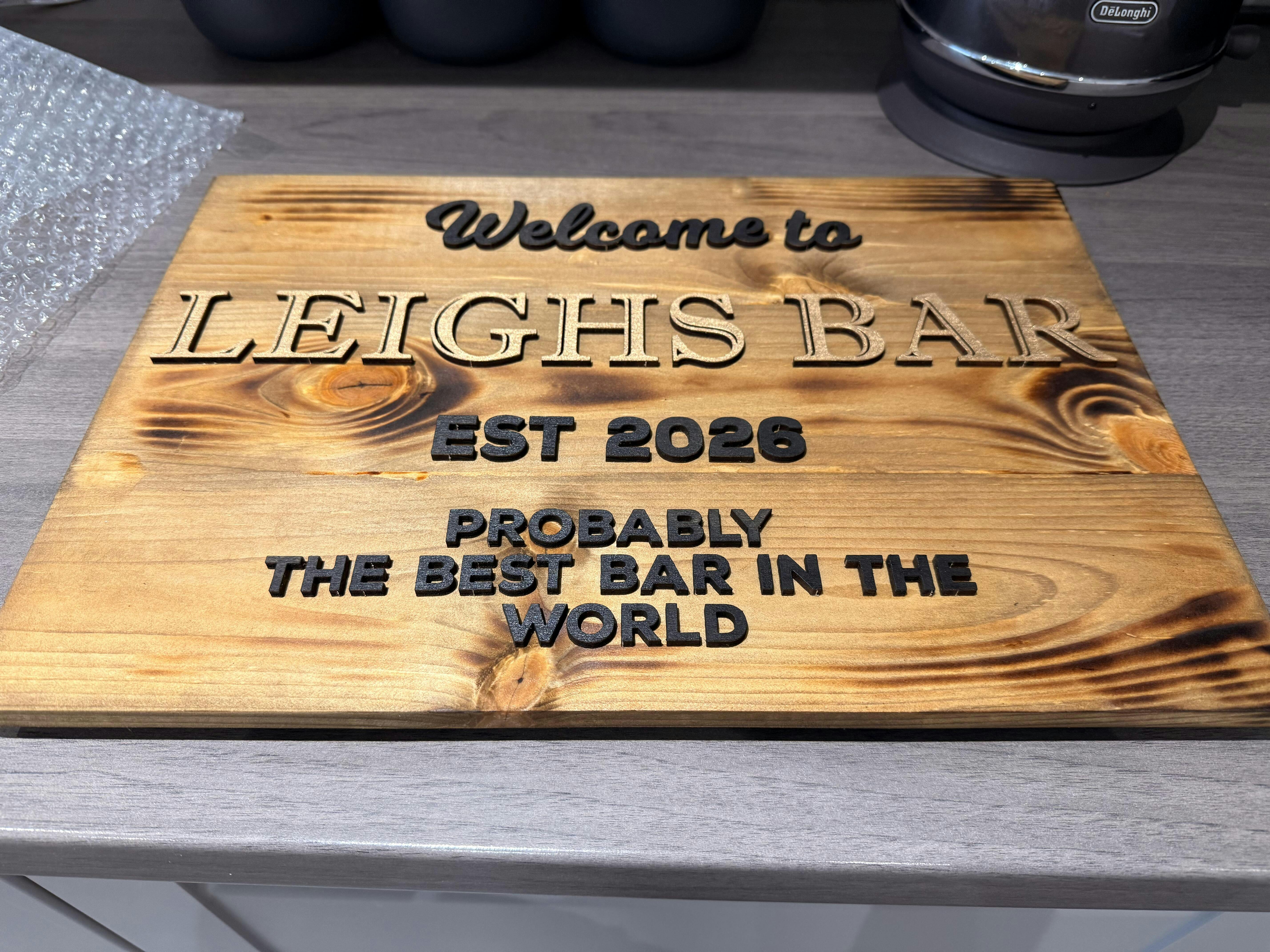 Wooden custom bar sign