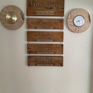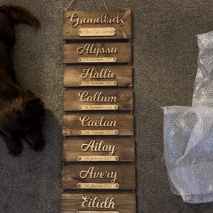 I recently purchased a wooden grandchildren plaque as a Christmas gift for my mam, and I couldn't be happier with the choice. The quality of the plaque is simply amazing, surpassing my expectations. Every detail of the personalisation was thoughtfully crafted and added a special touch that made the gift even more meaningful. The craftsmanship is evident in every aspect of the plaque, from the finish of the wood to the precision of the names and date of births. It's a beautiful piece that perfectly captures the love and bond within a family. It will be a treasured keepsake for years to come. The delivery service was really prompt and the plaque arrived in pristine condition, securely packaged to ensure no damage during transit. I highly recommended for anyone looking to give a heartfelt and personalised gift to their loved ones.